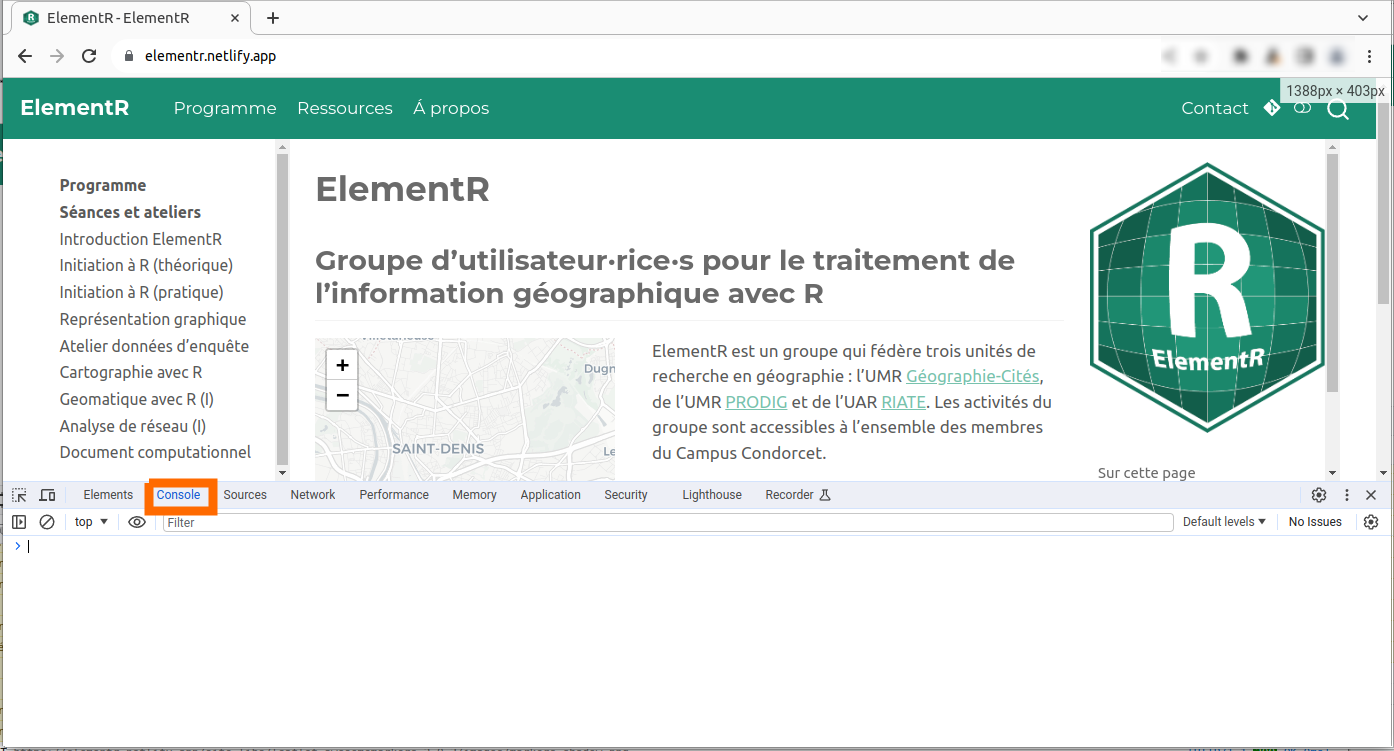 Pour tester cet outil de requête, nous pouvons chercher à isoler des informations tirées du site du groupe ElementR, et en particulier de la page du programme.